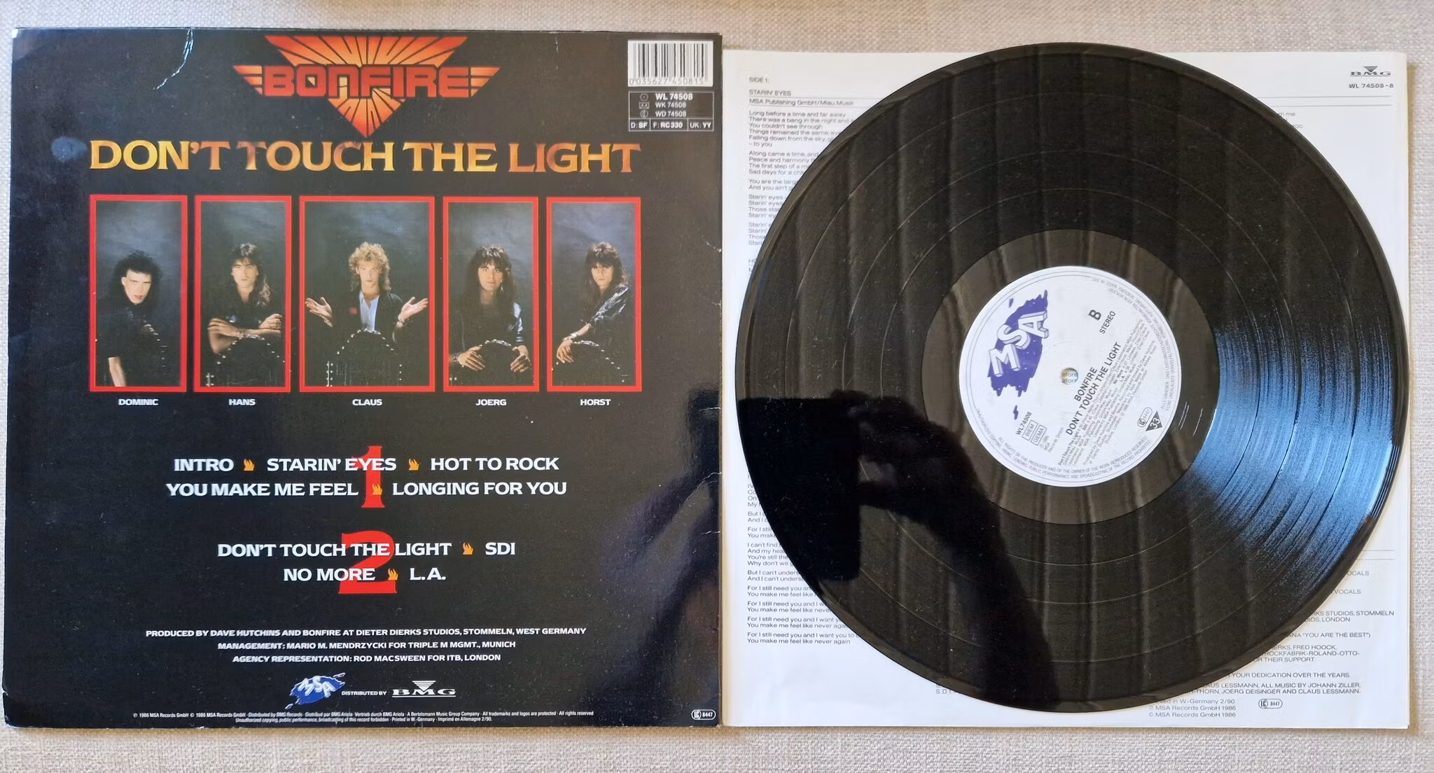 Bonfire, Don't touch the light. Vinyl LP 150 SEK Catalogue number: WL74508. Label: MSA. 1986 Europe, Begagnad/Used Grade 4 I lager/In stock Lägg i korgen/Add to cart Dela Lagersaldo: 1 Artikelnummer: 4447 Info Catalogue number: WL74508. Label: MSA. 1986 Europe, Begagnad/Used Grade 4