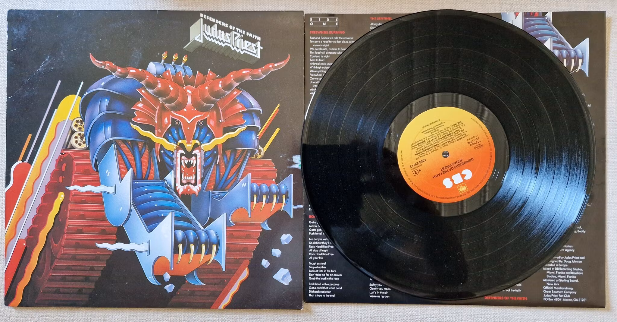 Judas Priest, Defenders of the faith. Vinyl LP 250 SEK Catalogue number: CBS 25713. Label: CBS. 1984 NL, Begagnad/Used Grade 3 I lager/In stock Lägg i korgen/Add to cart Dela Lagersaldo: 1 Artikelnummer: 4452 Info Catalogue number: CBS 25713. Label: CBS. 1984 NL, Begagnad/Used Grade 3